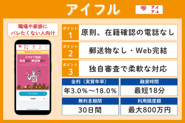アイフルの最大の特徴は、原則として職場への電話による在籍確認を行っていない点です。