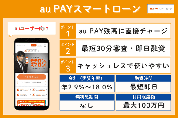 au PAYスマートローン年2.9%~18.0%最短30分なし最大100万円