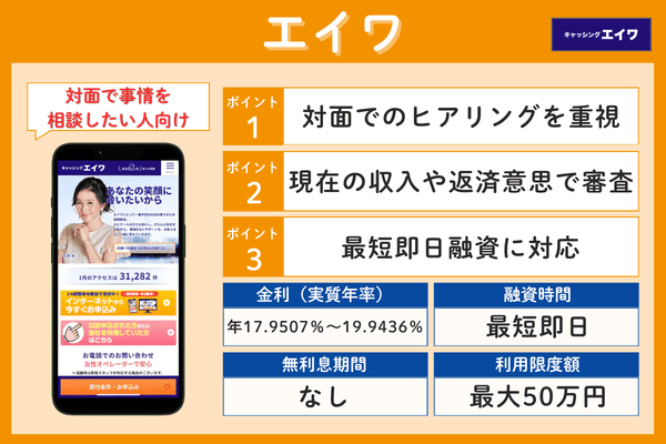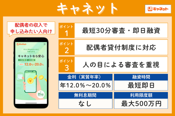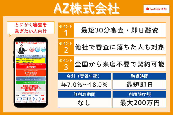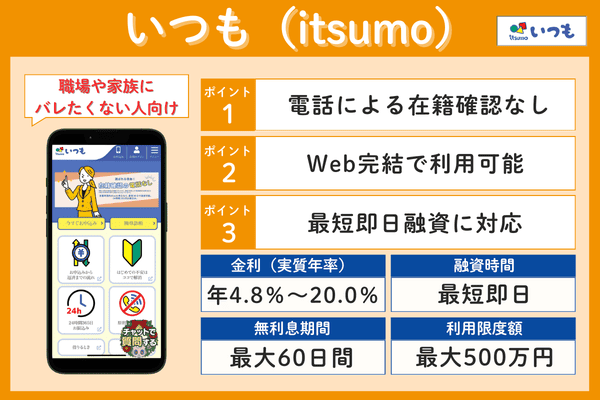 Webからの申し込みで最短3分審査・即日融資に対応しており、原則として勤務先への電話連絡も行われません。