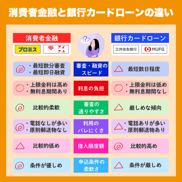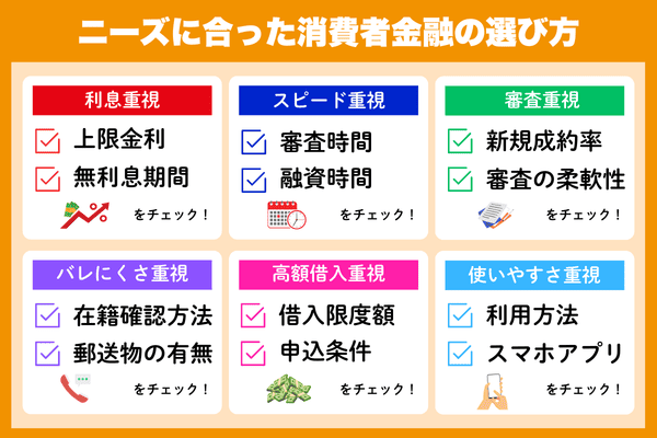 消費者金融は、どこも同じように見えても、実際には金利・無利息期間・審査スピード・在籍確認の方法・借入や返済のしやすさなどが大きく異なります。