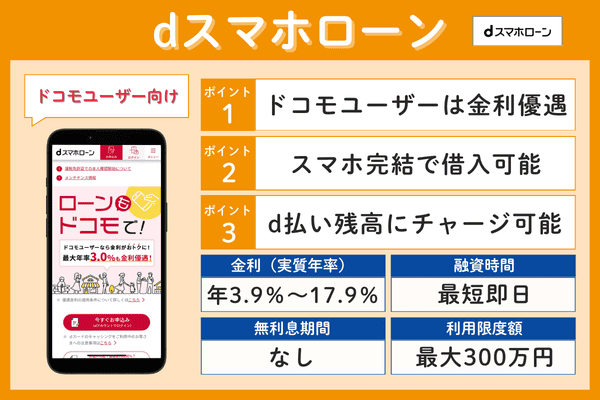 dスマホローン年3.9%~17.9%最短即日なし最大300万円