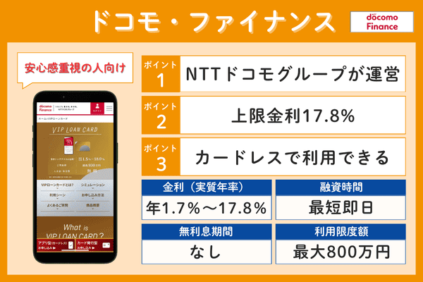ドコモ・ファイナンス年1.7%~17.8%最短60分なし最大800万円