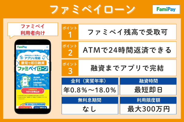 ファミペイローン年0.8%~18.0%最短即日なし最大300万円