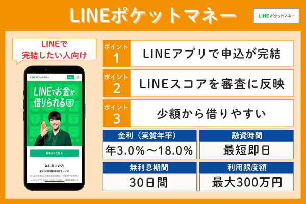 LINEポケットマネー年3.0%~18.0%最短10分30日間最大300万円