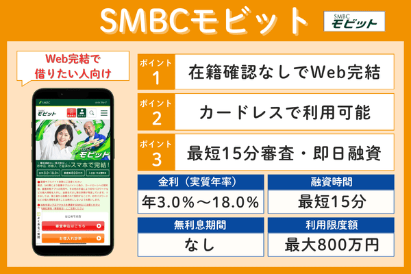 SMBCモビット年3.0%~18.0%最短15分なし最大800万円