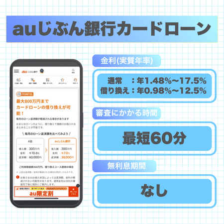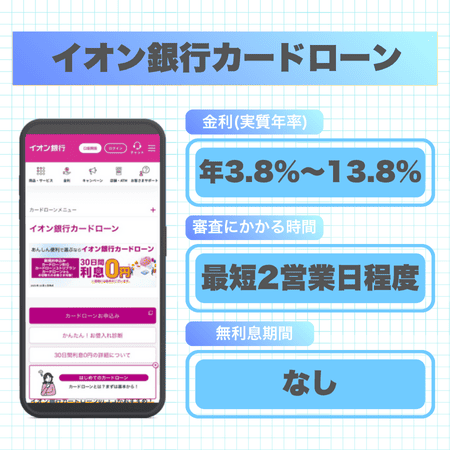 カードローン名 | 金利(実質年率) | 借入可能金額 | 審査にかかる時間 |