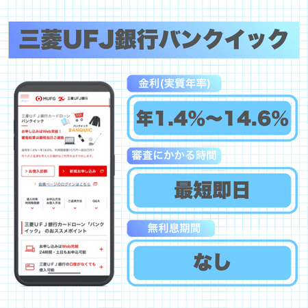 即日融資には対応していませんが、比較的スピーディに借りられる傾向があります。