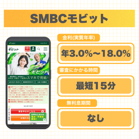 SMBCモビット | 3.0%~18.0% | 1万円~800万円 | 最短15分 |