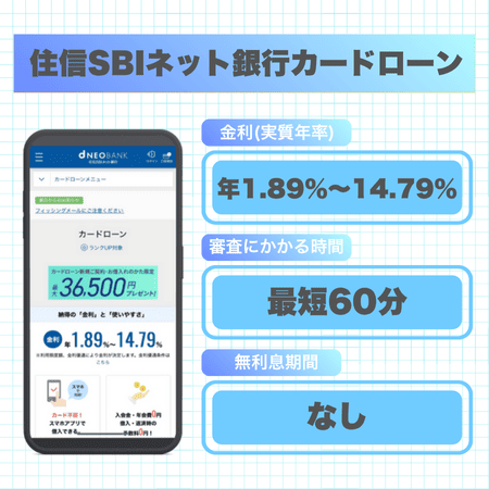 スマホATM取引にも対応しているため、カードを発行せずカードレスで使うことも可能。審査は最短3分で完了し、即日融資にも対応しています。