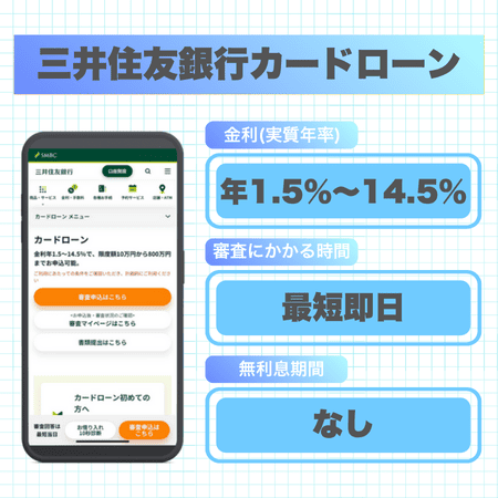 SMBCモビットのカードローンは最大800万円までの借り入れに対応しており、金利は最低3%から。