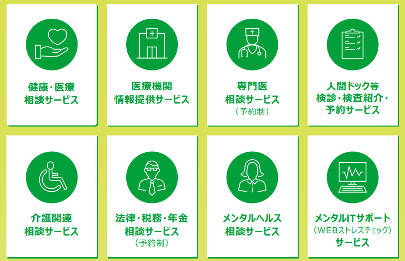 またサービス範囲は非常に広く、SOMPO健康・生活サポートサービスという健康・医療や介護に関することから、税務や法律に関するご相談まで皆さまの健康と生活を応援するサービスも利用可能です。
